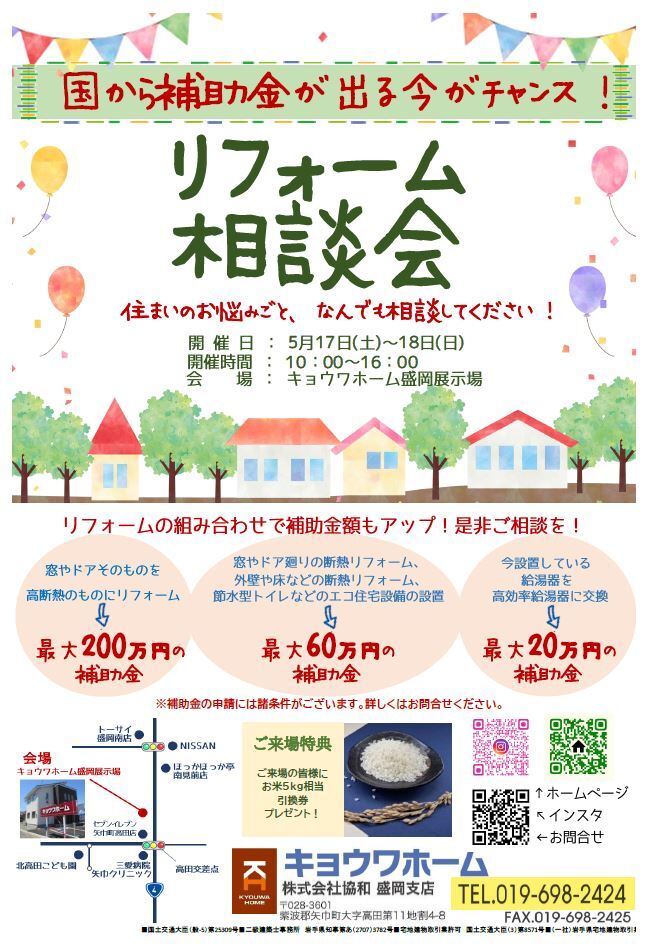 リフォーム相談会:5月17日㈯・18日㈰