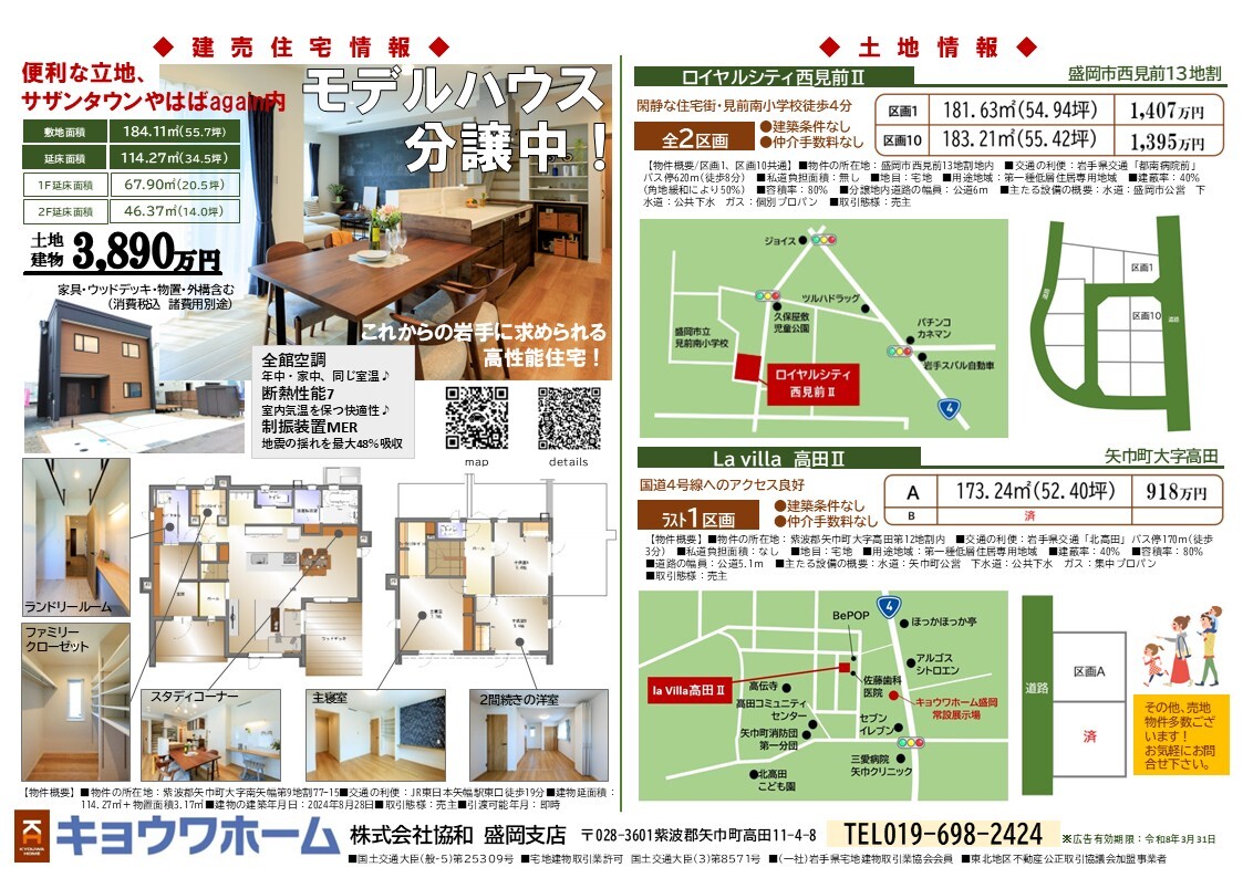 お問い合わせは019-698-2424又はinfo-morioka@kyouwa-home.jpまで